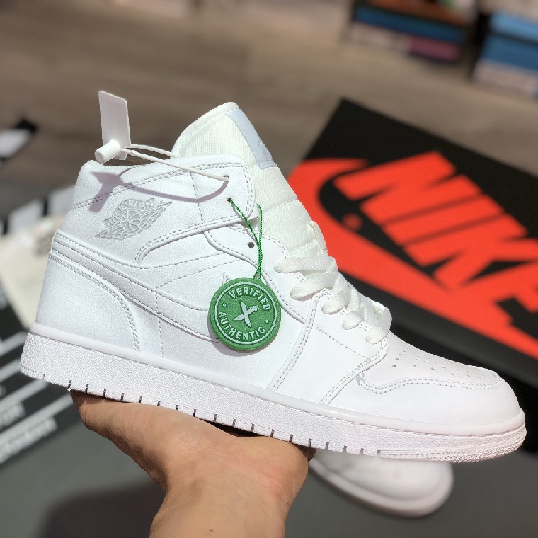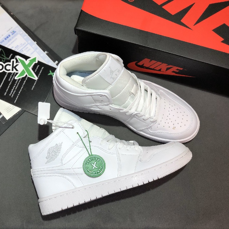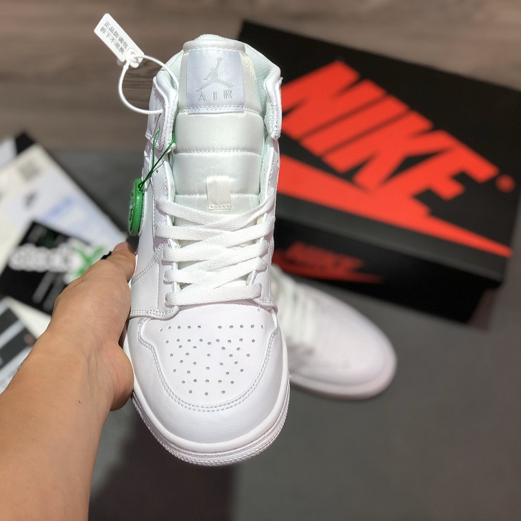 Với chất liệu vải trung tính và không thêm màu sắc, Air Jordan 1 Mid BG Triple White được phát hành vào tháng 3 năm 2019 với phong cách tối giản lấy cảm hứng từ mùa xuân. Được thiết kế cho học sinh cấp III, đôi giày sneaker cổ điển này mô phỏng nguyên bản của Peter Moore dành cho người lớn năm 1985 với các lớp phủ hỗ trợ ở gót chân, cổ áo, giữa bàn chân và tấm chắn bùn. Để giải quyết lối chơi năng động của MJ, chiếc giày được làm với một hộp ngón chân đục lỗ để tránh quá nhiệt và lực kéo cao su dính khi khởi động và cực ma sát khi người dùng muốn dừng đột ngột.