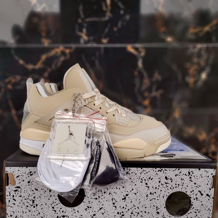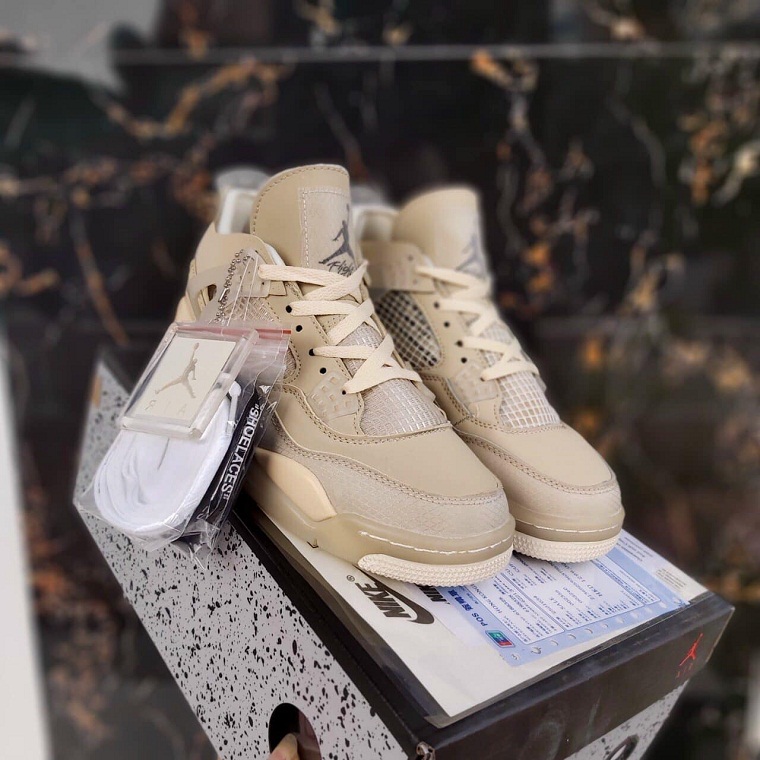 Về tổng thể, Off-White x Air Jordan 4 Retro White Sail rep 11 thể hiện một tông màu kem trắng nhạt, tương phản trực quan một phần của phần trên màu trắng. Toàn bộ thân giày được thiết kế bằng các chất liệu khác nhau, cao su mờ và da cao cấp đan xen tạo nên vân thạch trong vắt, đồng thời phù hợp với yếu tố cổ điển như dòng chữ Off White thủ công, thể hiện nhiều chi tiết, xứng đáng để thưởng thức. Ngoài đôi giày, tên chung cũng sẽ kết hợp 4 đôi dây giày với màu sắc khác nhau, tạo cho người mua nhiều không gian để kết hợp độc lập và trí tưởng tượng.